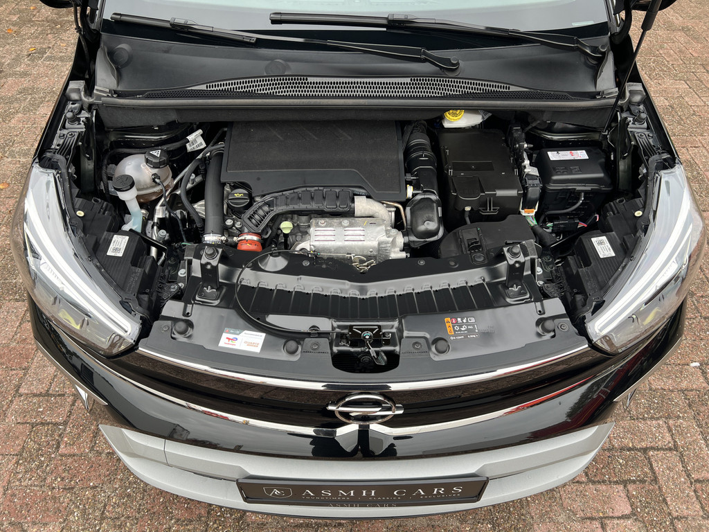 Een als nieuwe Opel Crossland Elegance 1.2T in Carbon Black gecombineerd met een zwart interieur.