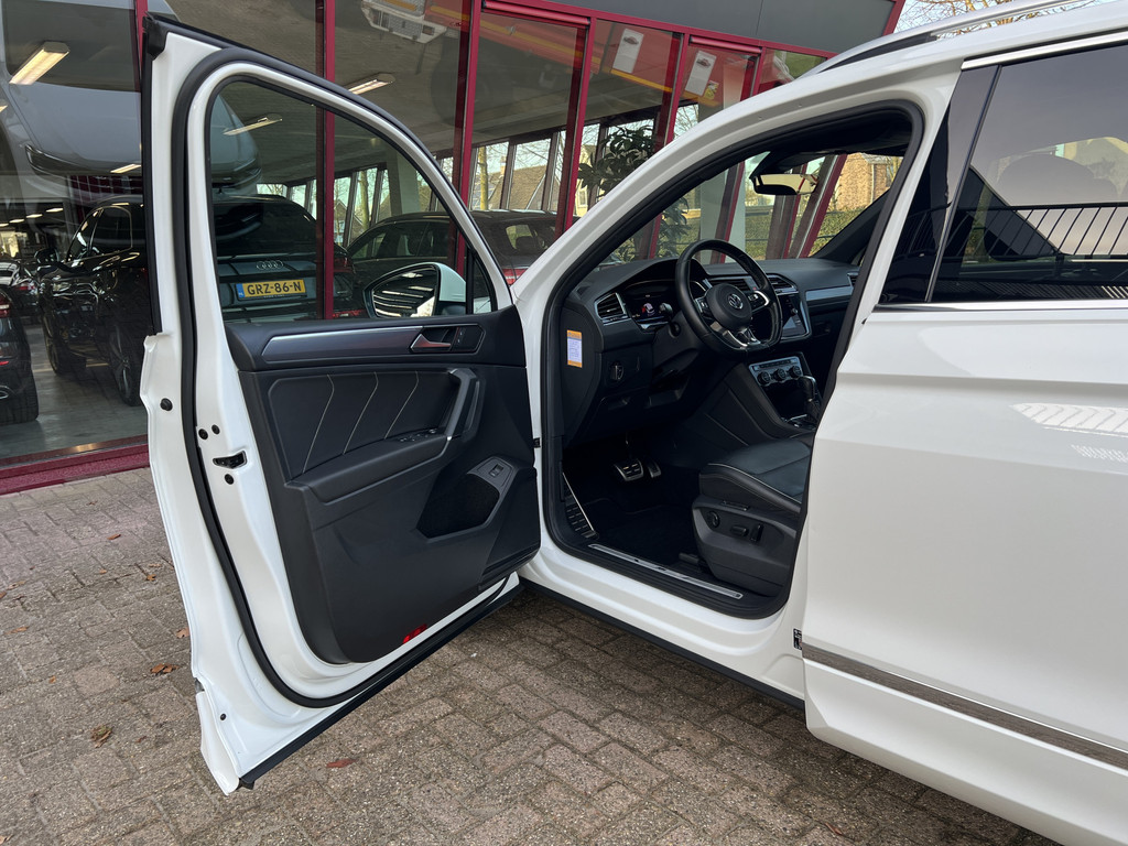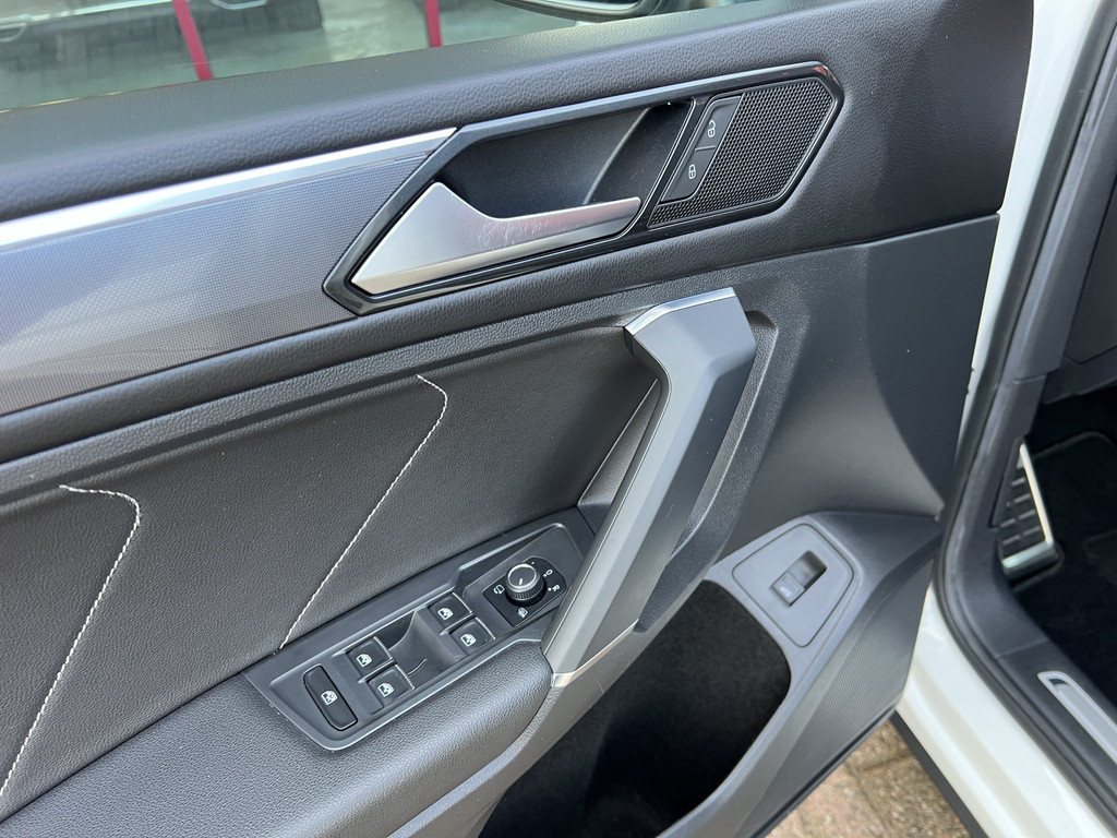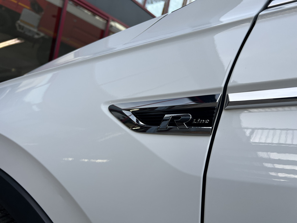 Nagenoeg full options uitgevoerde Volkswagen Tiguan Allspace R-line Highline Business in een sportief-chique kleurencombinatie van Pure White met zwarte en chromen accenten en een titaanzwart lederen interieur. R-line logo’s en details zijn consequent doorgevoerd in zowel interieur als exterieur. Tevens voorzien van zwarte hemelbekleding en een volledig glazen panoramadak.